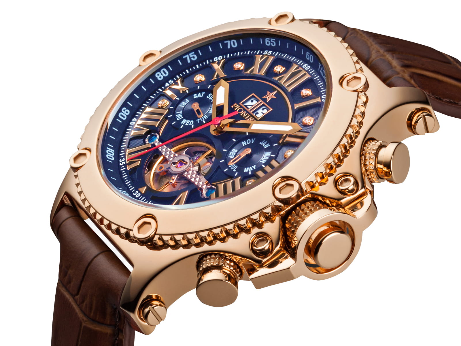 This watch is one of the most noteworthy styles from Tufina. The whole New York collection is versatile and edgy, perfect for those who push boundaries. The inner bezel features a tachymeter with an open-heart face and a skeletonized back. Just the right gift for yourself or your favorite guy.