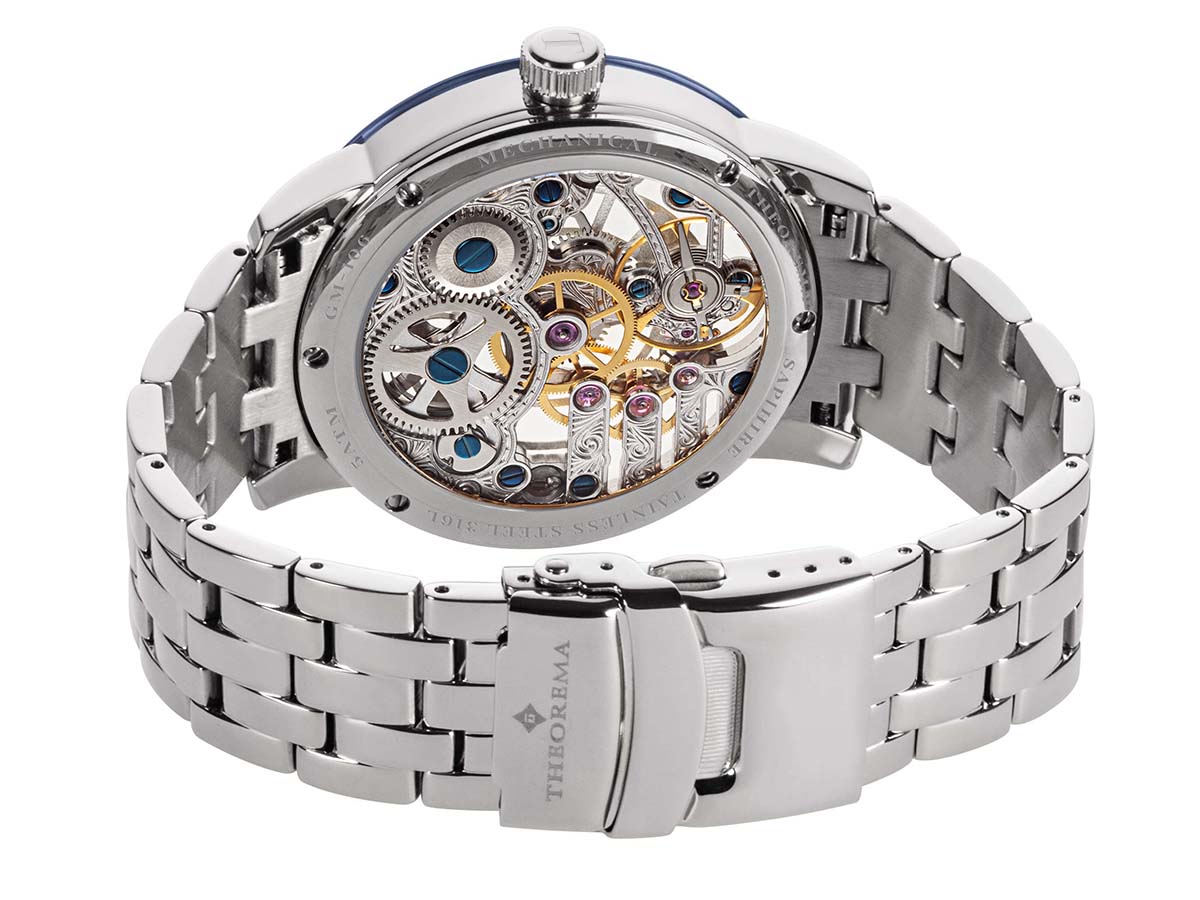 A perfect fusion of classic and modern look. This collection is one of the best expressions of what Theorema Germany can achieve. A sharp and stylish case mixed with a superbly designed dial, along with the innovative movement, which is the real jewel of this timepiece.