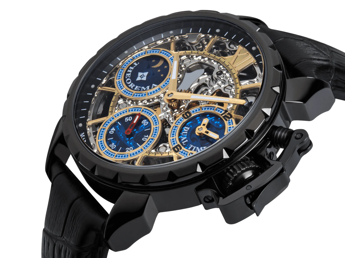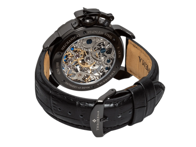 The style on the Dual-Time Oman by Theorema Germany lets your creativity run wild. This timepiece was designed specifically for the sophisticated, trendy gentleman. A vibrant look with a distinctive, timeless fashion. With its combination of classic lines and modern touch, this master timepiece makes for a special accessory.